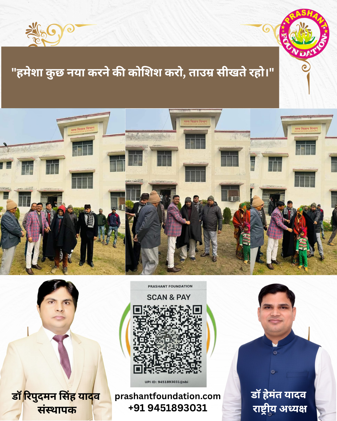 PHOTO GALLERY Blankets: "Is thand mein kisi ki garmahat banein DONATE NOW Insaaniyat ka haath, zarooratmand ke saath Aapki thodi si madad, kisi ki poori duniya badal sakti hai. PLANTATION Prakriti ki raksha, Rudraksh se suraksha